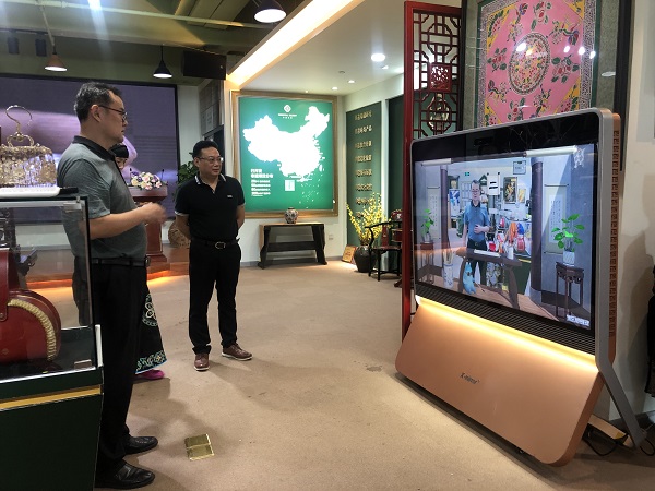 随后,庞总与刘总来到博乐信息办公室,现场体验了“AR+5G广告”互动,通过人脸识别为不同性别、年龄的人群配置相匹配AR互动内容及广告信息,实时云端高速下载并体验,目前该方案已在华为5G实验室通过测试,并达到商用标准。除此之外,庞总与刘总就文旅、科普教育等方面的发展与博乐信息进行了深入沟通,并于第二天前往博乐信息战略合作伙伴非遗生活,参观非遗生活体验馆并体验了汉字五千年、活字印刷术等国学非遗系列AR互动内容,并表示鲁商传媒集团正处于向文化创意产业转型阶段,正是需要像博乐AR这种创新内容,为鲁商传媒集团注入新的活力。