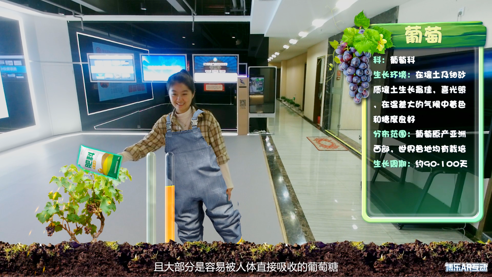 《AR农场》以互动形式让体验者亲近大自然,当你站在屏前,即可选择你喜爱的果蔬,了解果蔬的生长过程及生长规律,尤其是城市中的孩子,在互动中认识农作物,激发孩子们对植物世界的探索兴趣。目前我们AR农场共有20余种果蔬随机掉落,未来也会持续增加。