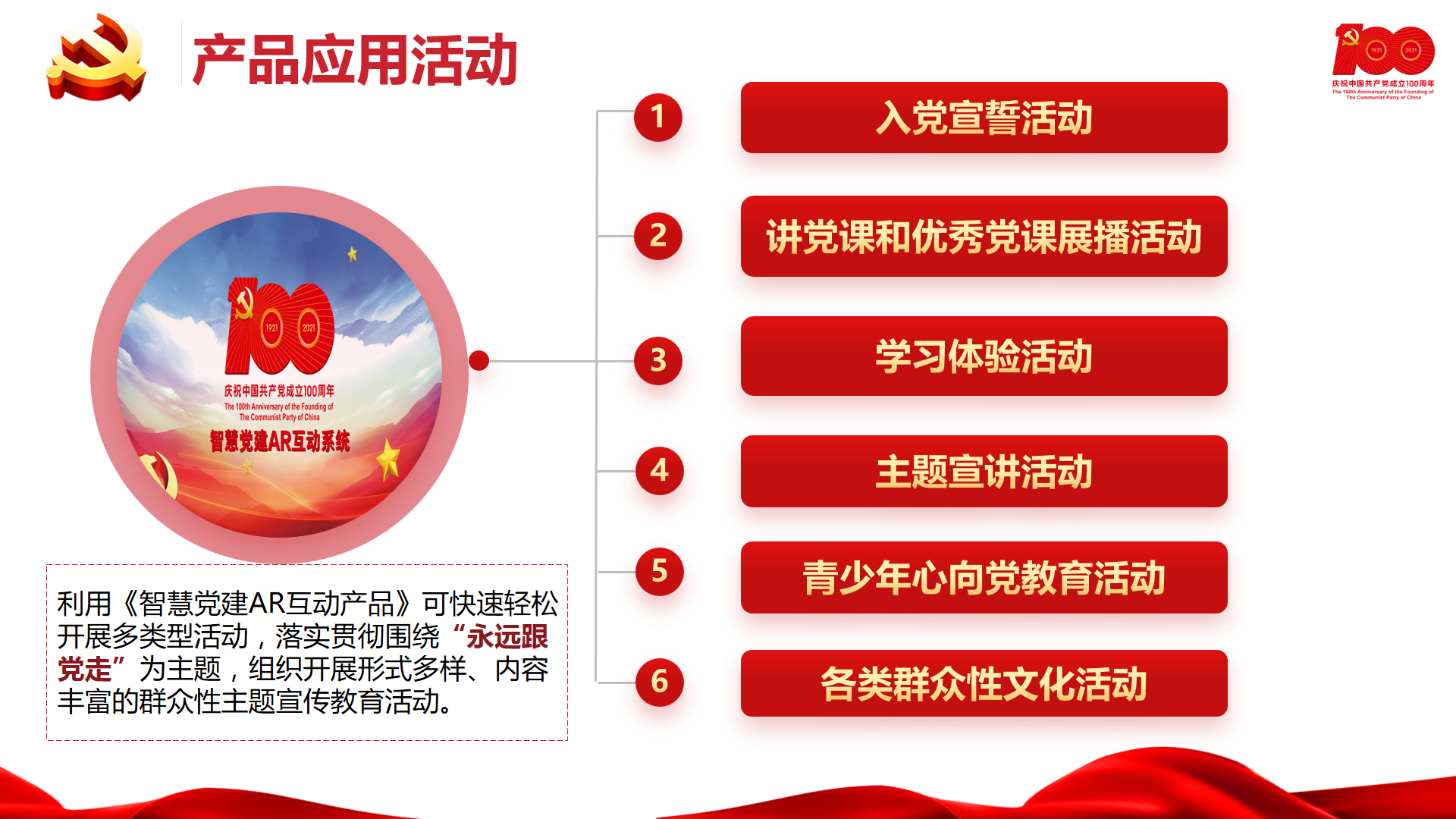 助力各党组织开展100周年庆典活动