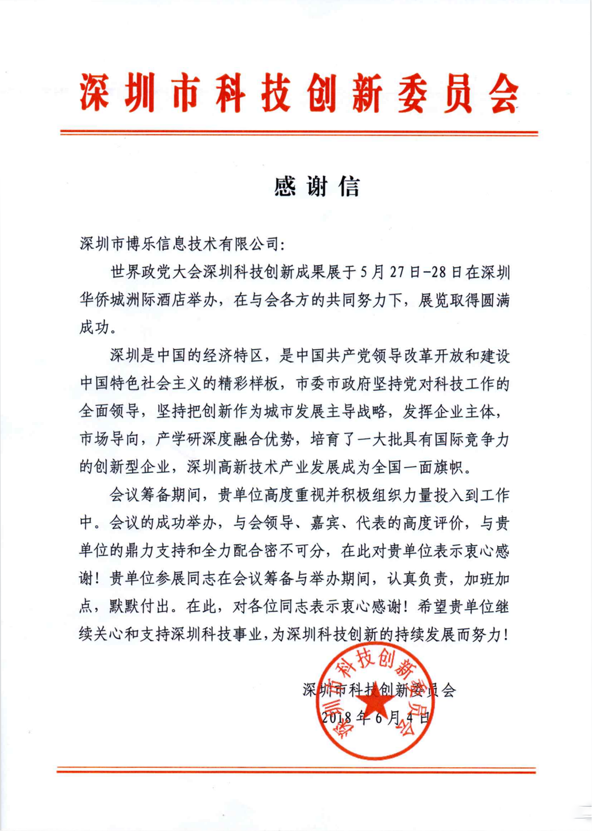 深圳与世界政党的大会渊源已久,早在2018年就是世界政党大会的主会场,恰逢深圳改革开放40周年,深圳向全世界展示创新科技成果。博乐信息受深圳市科创委之邀重磅亮相,向全世界100多个国家、200多个政党的数百位嘉宾展示中国传统文化系列AR互动内容。在会议展区现场,憨厚可爱的国宝熊猫、世界第八大奇迹兵马俑、川剧表演特技之川剧变脸等中国优秀传统文化互动,吸引了众多海内外政党嘉宾、媒体的互动体验。彰显中国“科技+文化”魅力,展示大国文化软实力的非凡成就。会后,博乐信息也收到深圳市科创委发来的感谢信。