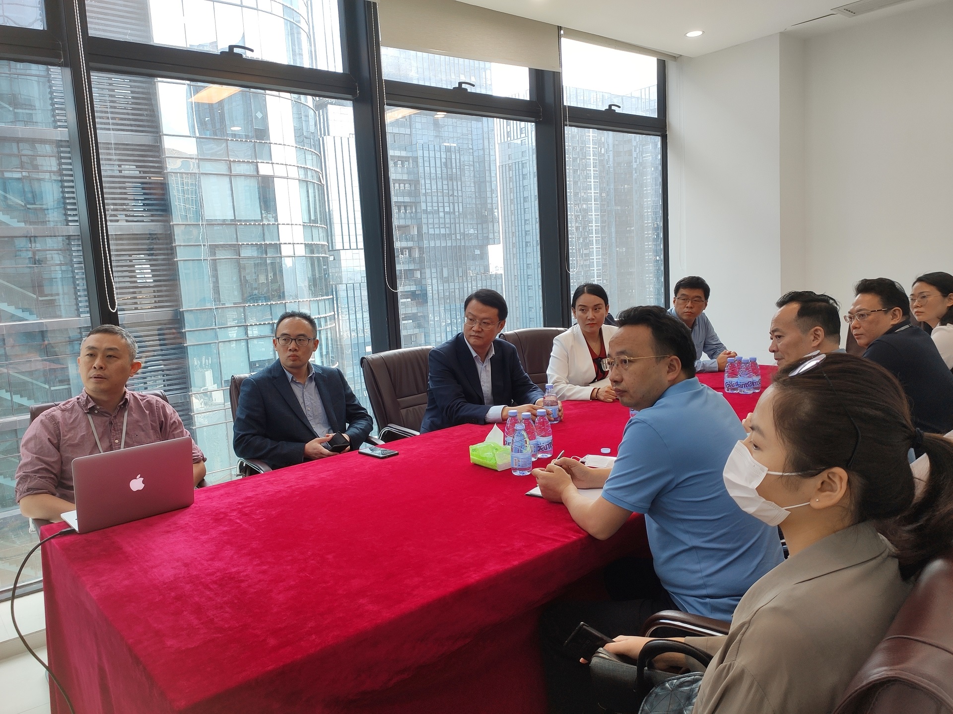 体验结束后,季副区长和李董以及赵总一行在会议室听取博乐信息在党建、文旅休闲、数字展厅、金融银行等领域的场景案例。季副区长也说:“非常欢迎博乐信息将数字化科技带到徐州,带动徐州创新科技发展”。