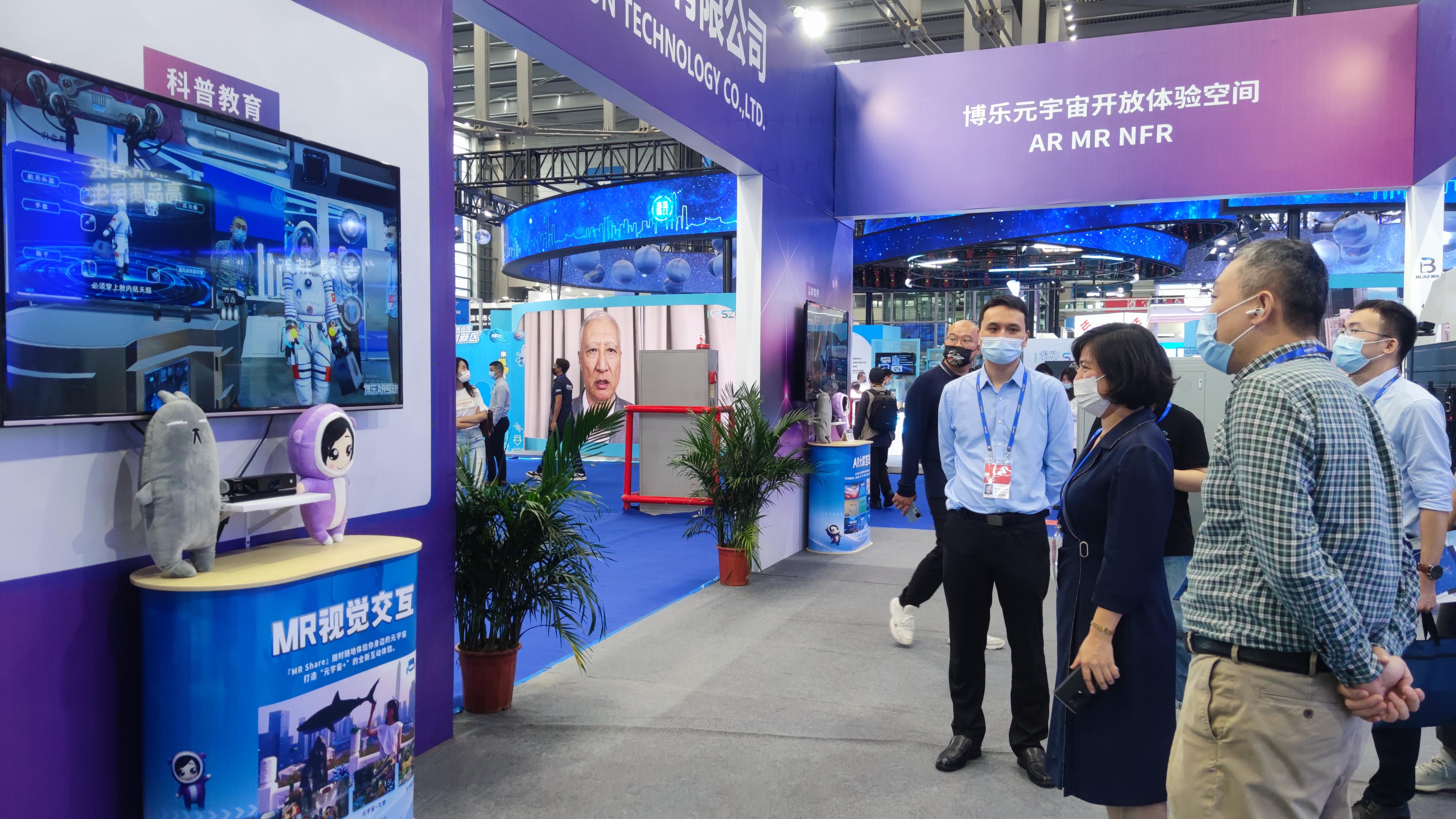博乐信息以独立研发的MR Share视觉交互应用为核心,通过虚实融合与3D数字场景搭建,成功打造了“博乐元宇宙开放体验空间”,在展会现场全方位地展示了博乐信息在内容生产、运营和技术赋能的闭环能力,为产品展示和空间营销创造了新的模式。