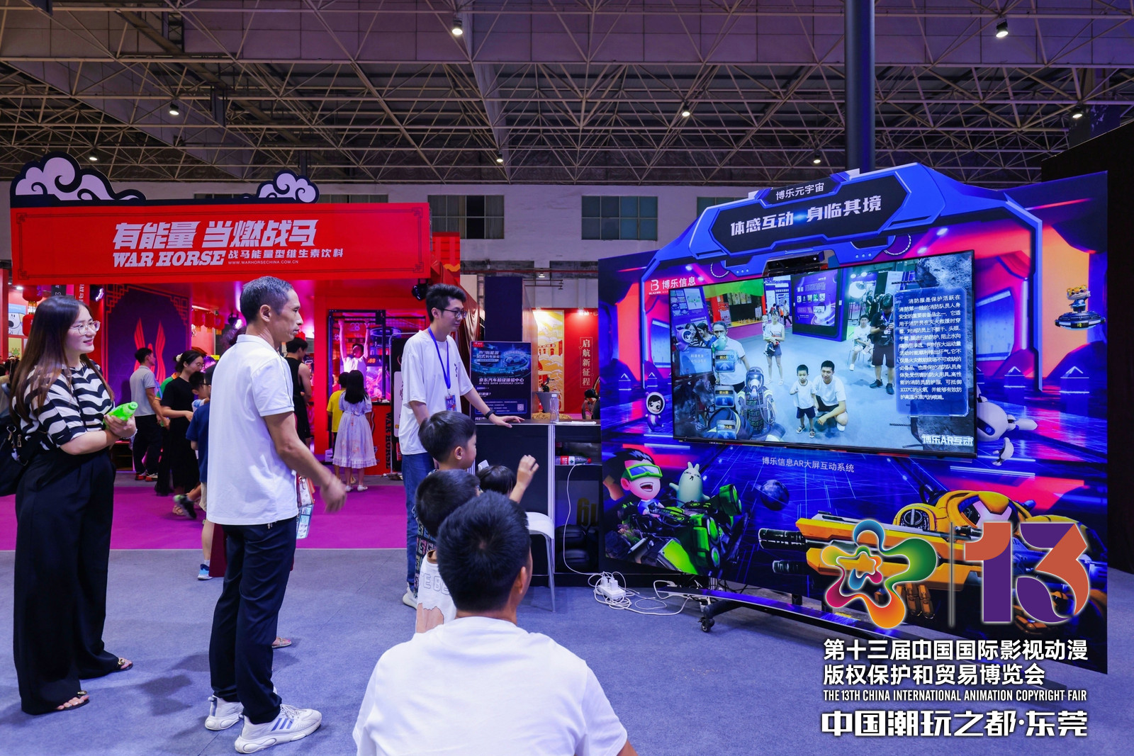 漫博会现场,博乐信息在粤产优秀电视动画作品展区、国漫国潮车展区、玩具总动员展区、汉服甲胄陵光营展区以及主论坛区等区域,实现了5AR大屏互动、12MR沉浸式3D虚拟展厅的创意呈现,元宇宙技术与潮流活动的融合,营造了全馆互动、全民参与的良好氛围。
