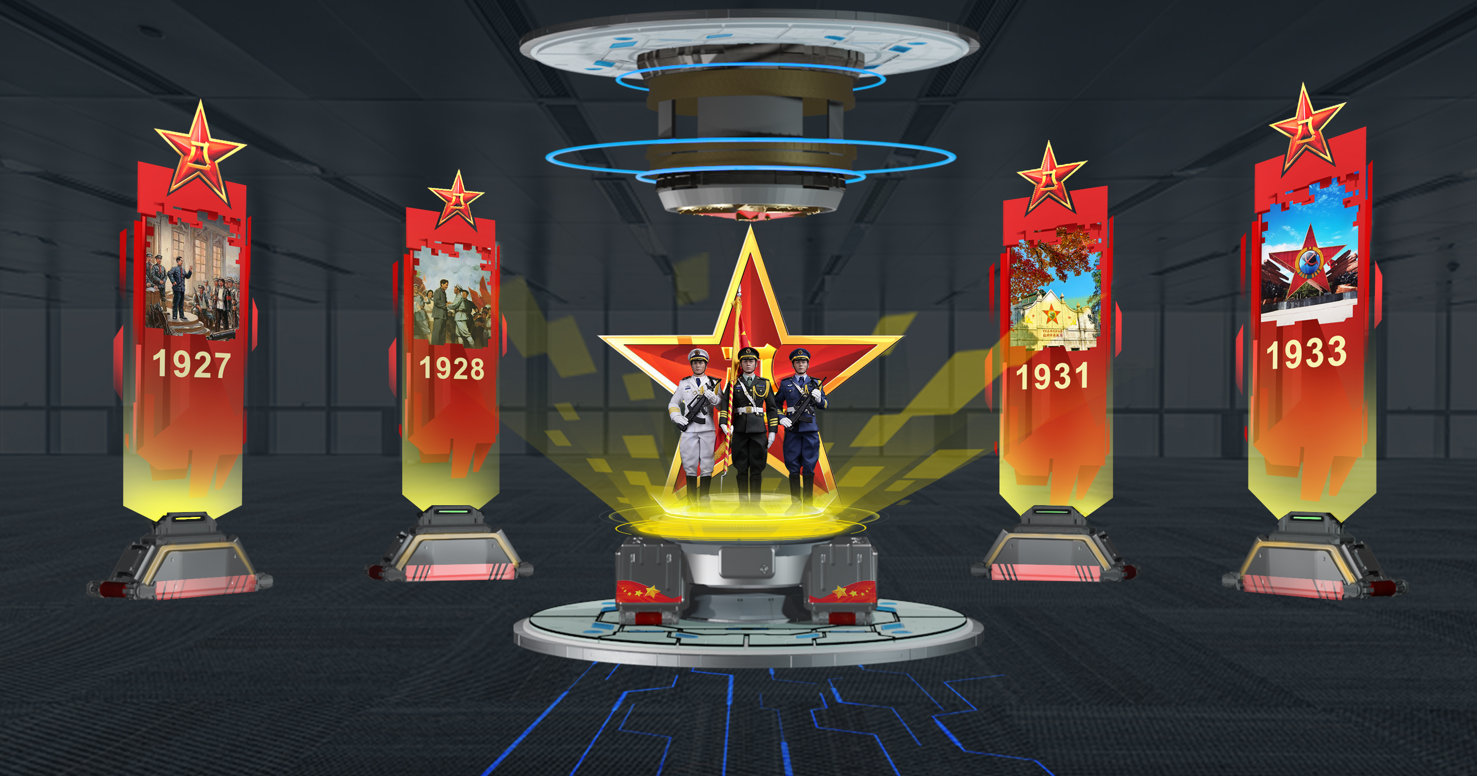 八一建军节,博乐信息推出了全新自主研发的MR国防教育”系列虚拟数字空间,包含“铸盾强防”“勿忘国耻”“军强国安”“国防利器”等四大主题场景,通过数字技术实现沉浸式国防知识教育与学习,不断强化青少年国防观念和居安思危意识,坚定理想信念,培树青少年“传承红色基因 筑我钢铁国防”的观念。