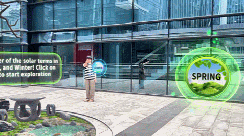《二十四节气》MR数字空间是以中华传统文化二十四节气为主线,通过混合现实技术融合“四季变化”“月令七十二候”“南北习俗”等文化元素,以元宇宙全景视角引领体验者沉浸式探索学习二十四节气。