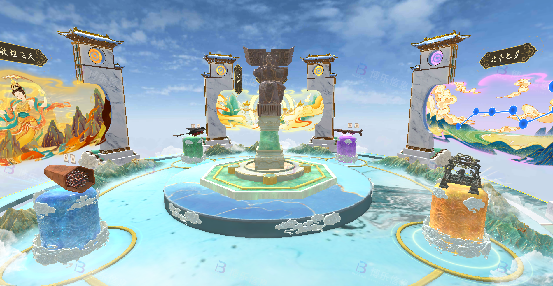 嫦娥奔月、敦煌飞天,这些浪漫的神话故事生动展现了中华传统文化对浩渺苍穹的想象和憧憬。博乐信息通过数字虚拟空间重构,实现传统文化与航天知识的具象化。