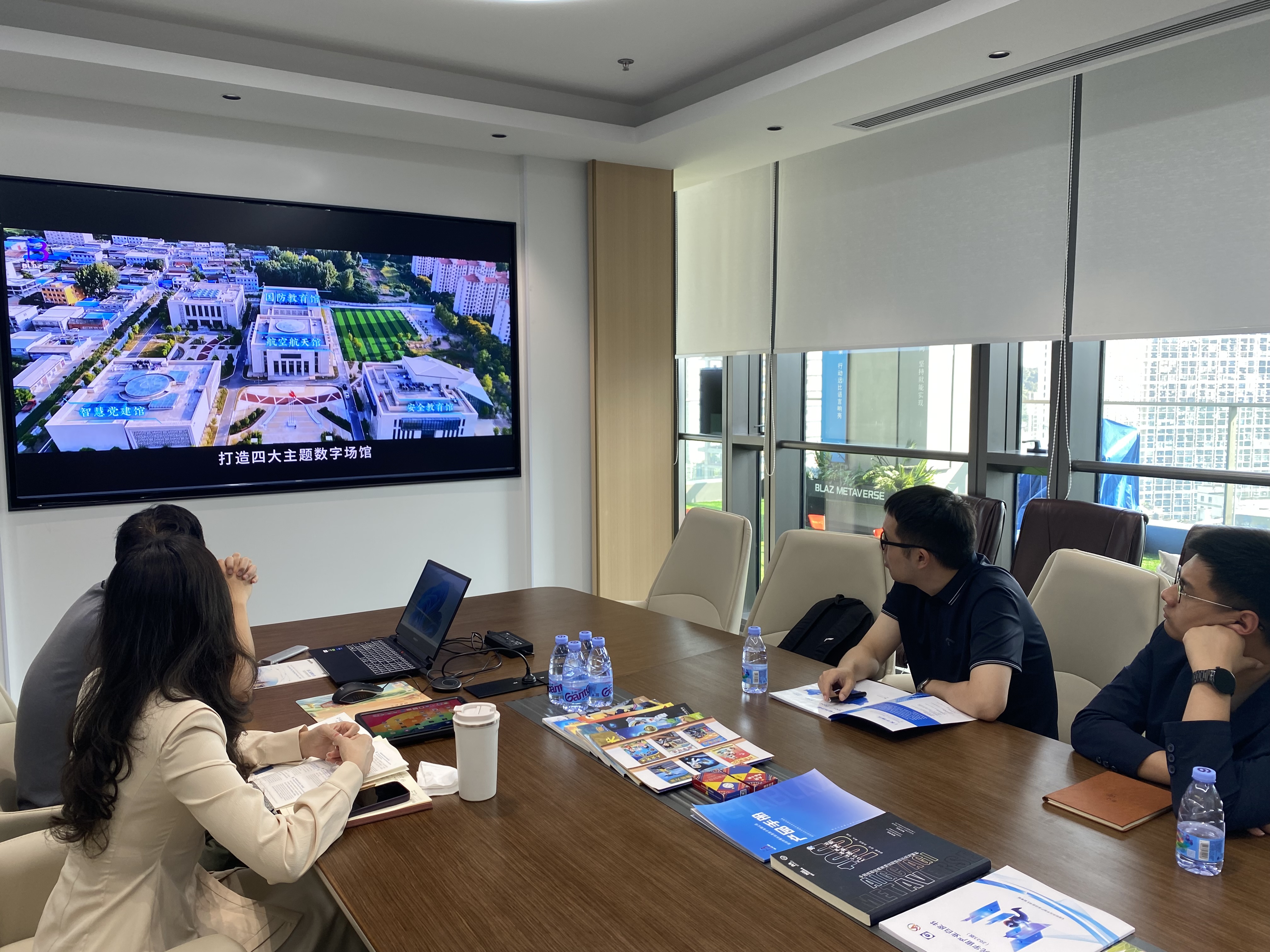 交流会上,博乐信息重点介绍了为河南宝丰打造的元宇宙智慧教育综合实践基地。该基地占地4.8万㎡,融合航空航天、国防教育、数字非遗等主题,通过沉浸式交互轻课程和XR技术,构建“云端一体化”的科技研学新生态。李部长对此表示高度认可,并强调:“元宇宙研学基地的创新模式与桐乡市文旅、教育发展规划高度契合,期待未来在研学课程开发、基地建设等领域展开深度合作。”