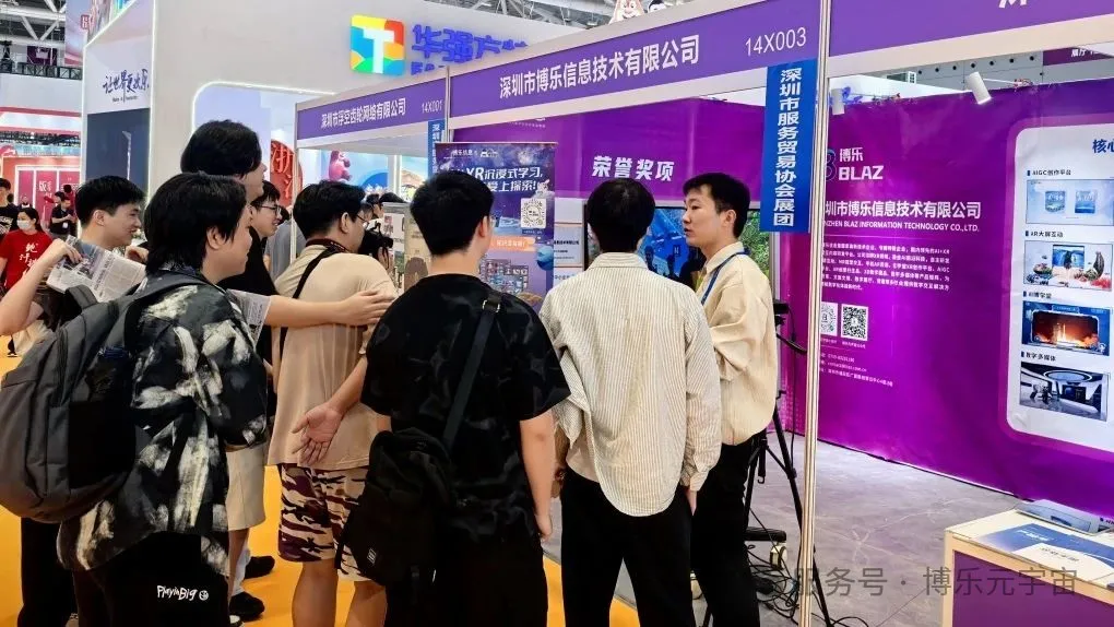博乐信息展位 14X003-14X005,以“AI+XR数字交互实验室”为主题,展示了智慧文旅与教育的前沿解决方案。现场专业观众络绎不绝,纷纷驻足体验。