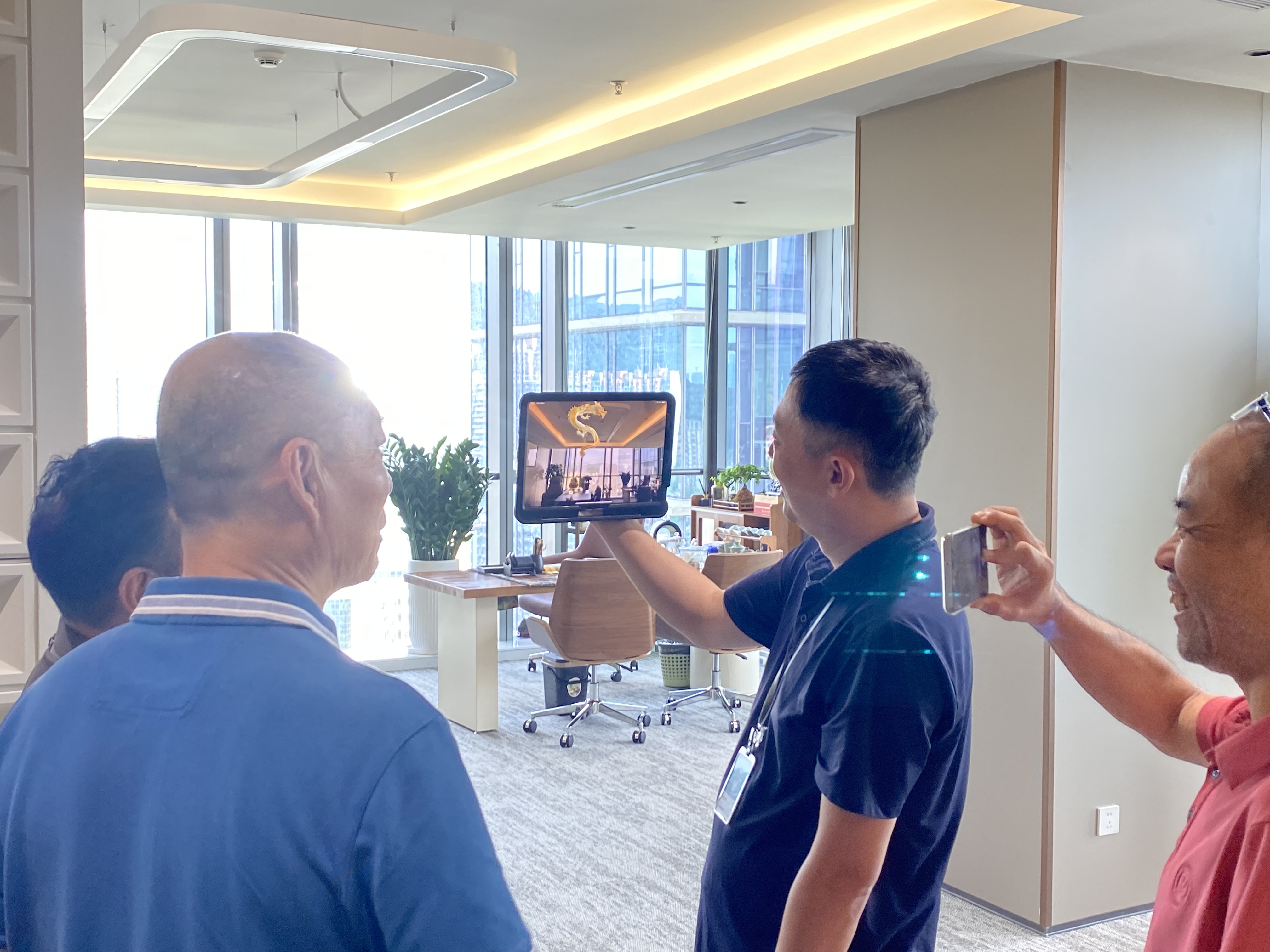5月 27 日,深圳市建设项目管理协会会长赵绪来香港办事处执行会长黄日升沙特阿拉伯办事处主任吴中荣一行到访博乐信息,深度考察AI+XR数字交互技术在文化传播与品牌全球化中的应用
