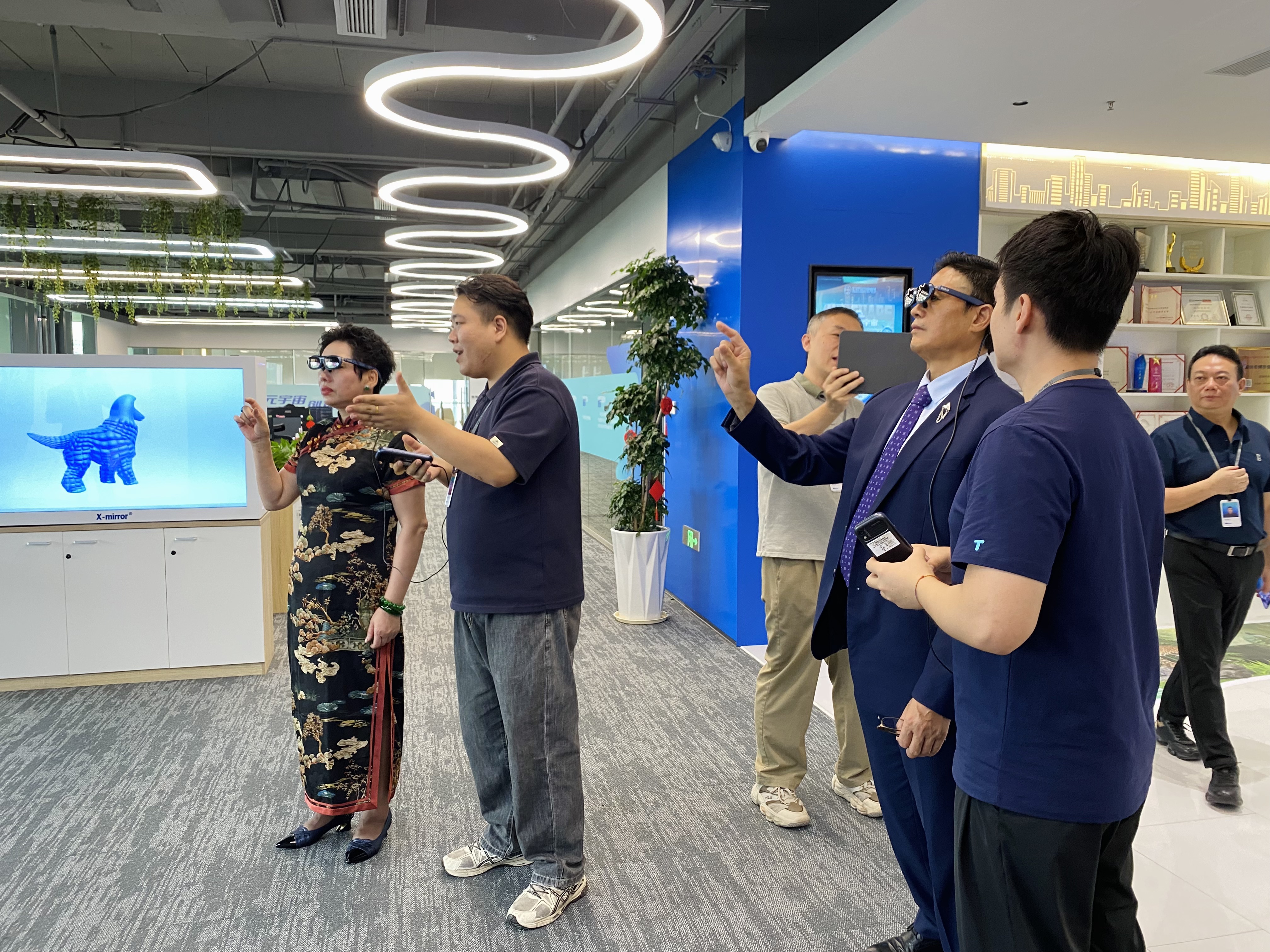 随后考察团体验了XR创作平台及全息柜等数字多媒体矩阵,其高效低门槛的内容生产与多维展示能力,验证了博乐信息在沉浸式技术生态的完整布局。