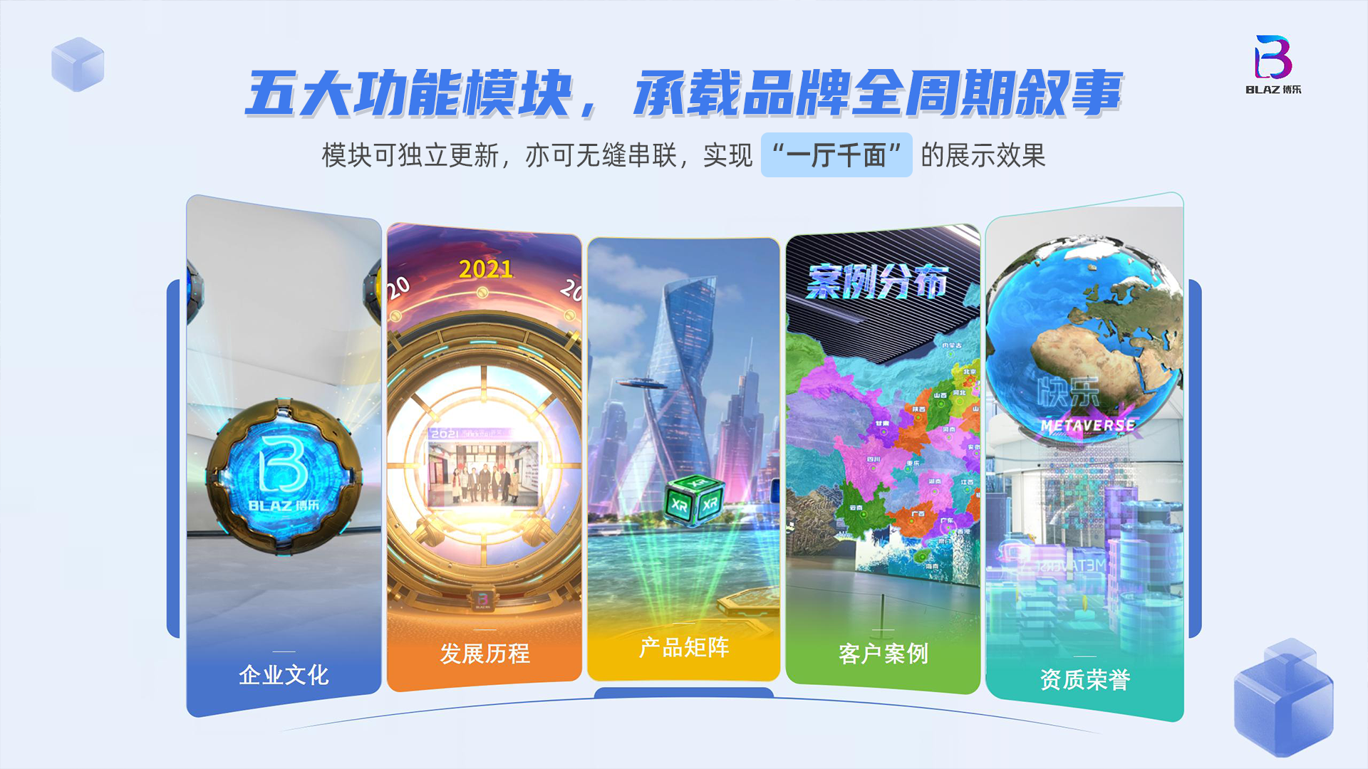 在企业展厅场景中,传统静态文化墙可升级为3D动态空间,打造兼具科技感与沉浸式体验感的数字会客厅。让品牌信息传递更高效。