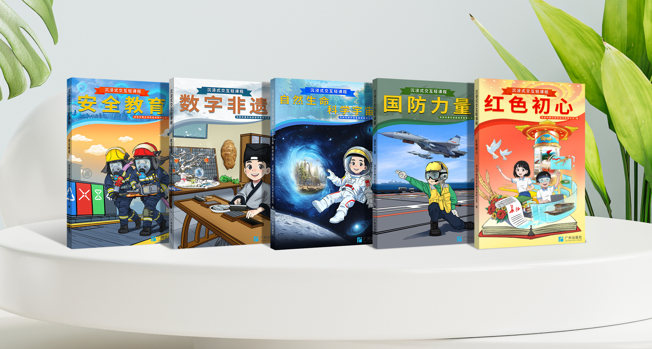 《沉浸式交互轻课程》教材:由广州出版社出版,覆盖义务教育阶段6大学科。每节课都标注了关联学科和核心素养,老师可以快速找到与自己学科匹配的内容。