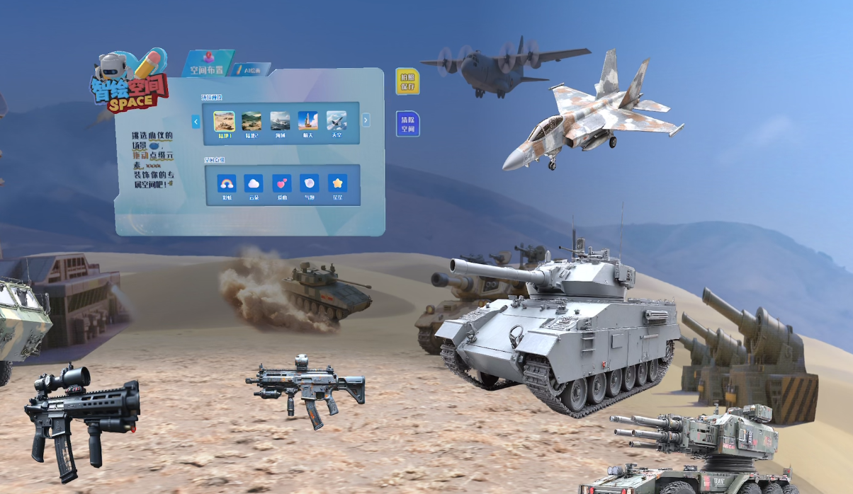XR科技探究系统:围绕“逐梦航天”、“国防力量”、“陆战之王”等主题,开发系列探究式MR体验。学习者可通过完成“空间站维修”、“战机巡航”、“航母编队指挥”等任务,在实践操作中理解国防科技原理与战略战术思想。